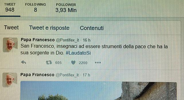 Papa Francesco su Twitter: insegnaci ad essere strumenti della pace..