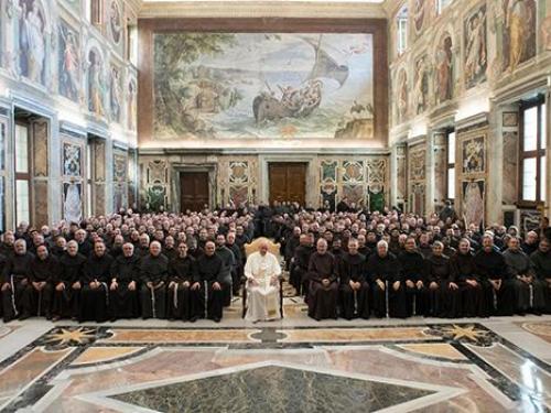 Il 23 novembre, nella Sala Clementina del Palazzo Apostolico, il Santo Padre Francesco ha ricevuto in Udienza i Membri delle Famiglie Francescane del Primo Ordine e del Terz’Ordine Regolare. A introdurre l’incontro è stato Fr. Mauro Jöhri, Ministro Generale dei Frati Minori Cappuccini, il quale ha ricordato al Santo Padre il cammino fin qui fatto assieme dalle Famiglie Francescane. Papa Francesco, a margine del suo intervento, ha commentato dicendo: “quello che state facendo è un bel cammino di minorità”. Al termine dell'incontro, il Santo Padre ha salutato singolarmente tutti i frati, mentre spontaneamente, tutti i frati intonavano Alto e Glorioso Dio e le Lodi a Dio Altissimo.