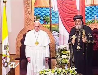 Per prevenire i conflitti ed edificare la pace è fondamentale adoperarsi per rimuovere le situazioni di povertà e di sfruttamento, dove gli estremismi più facilmente attecchiscono, e bloccare i flussi di denaro e di armi verso chi fomenta la violenza. Ancora più alla radice, è necessario arrestare la proliferazione di armi che, se vengono prodotte e commerciate, prima o poi verranno pure utilizzate. Solo rendendo trasparenti le torbide manovre che alimentano il cancro della guerra se ne possono prevenire le cause reali. A questo impegno urgente e gravoso sono tenuti i responsabili delle nazioni, delle istituzioni e dell’informazione, come noi responsabili di civiltà, convocati da Dio, dalla storia e dall’avvenire ad avviare, ciascuno nel proprio campo, processi di pace, non sottraendosi dal gettare solide basi di alleanza tra i popoli e gli Stati. Auspico che questa nobile e cara terra d’Egitto, con l’aiuto di Dio, possa rispondere ancora alla sua vocazione di civiltà e di alleanza, contribuendo a sviluppare processi di pace per questo amato popolo e per l’intera regione mediorientale.