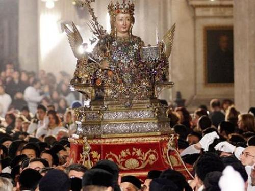 VI. O gloriosa s. Agata, che, trascinata nuovamente sopra i carboni accesi e sulla punta dei vasi infranti, trionfaste con la vostra costanza della superbia e della crudeltà di tutti i vostri nemici, otteneteci dal Signore la grazia che possiamo, se non guadagnare, almeno confondere con i nostri esempi tutti coloro che bestemmiano il suo nome e cercano la nostra rovina.