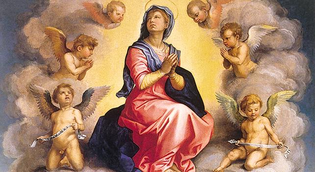 La Beata Vergine Maria, dolce Madre del nostro Signore Gesù Cristo e nostra, è celebrata, con molti titoli e in vari momenti solenni dell’anno liturgico, sia dalla Chiesa di Occidente che di Oriente. Vogliamo ricordare qui i quattro Dogmi di Fede e le relative Feste con cui la Chiesa onora Maria: la Maternità Divina, che si ricorda il 1° Gennaio; la Verginità, con la solennità dell’8 settembre; l’Immacolata Concezione, che si festeggia l’8 dicembre; l’Assunzione al Cielo, con la ricorrenza del 15 agosto. Il quarto Dogma è quello per il quale facciamo grande Festa a Santa Maria Assunta in questo mese.
