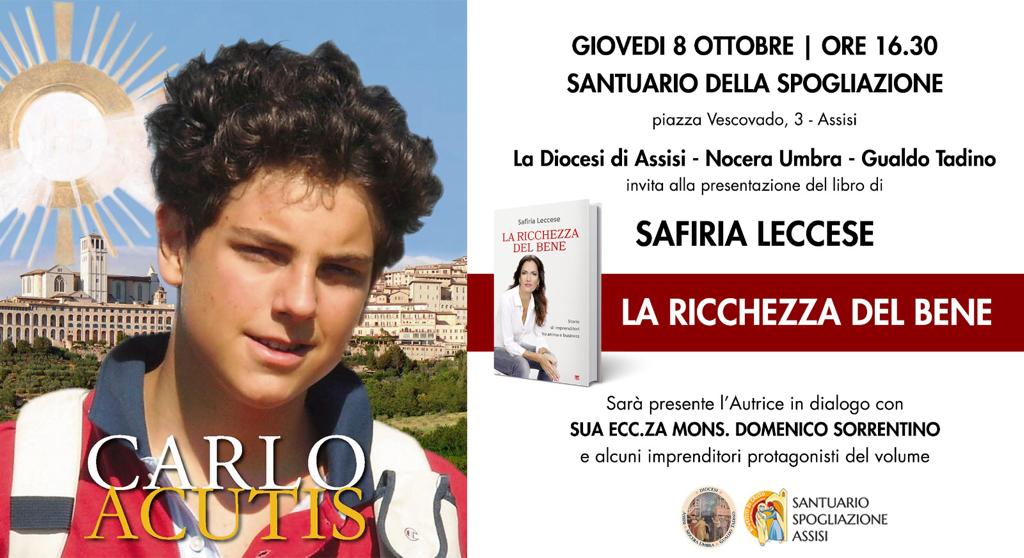Oggi pomeriggio alle 16.30 ad Assisi la presentazione del libro della giornalista Safiria Leccese La ricchezza del bene, il cui ultimo capitol è dedicato al Venerabile e prossimamente Beato Carlo Acutis. Due giorni dopo, sabato 10 ottobre alle 15, Leccese, sul sagrato della Baslica di Santa Maria degli Angeli, presenterà l’evento che precede la Messa di Beatificazione di Carlo Acutis, intitolato "L’autostrada per il Cielo”.