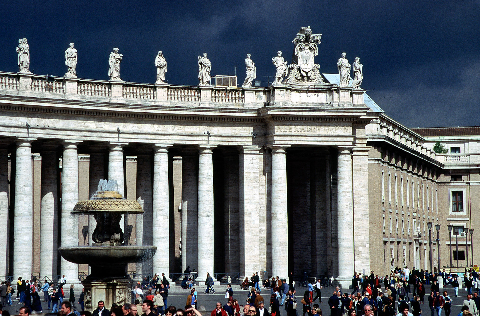 Lo spazio e il tempo sembrano fermarsi, e una sensazione sublime, d’infinito, cattura lo sguardo dello spettatore all’ingresso del porticato di san Pietro in Vaticano. Davanti a sé, un abbraccio ideale; o, per meglio dire, l’abbraccio della Chiesa per i suoi fedeli. A tal proposito, lo stesso Bernini, l’autore del colonnato e della piazza, scrisse: “La chiesa di S. Pietro, quasi matrice di tutte le altre doveva haver’ un portico che per l’appunto dimostrasse di riceverà braccia aperte maternamente i Cattolici per confermarli nella credenza, gl’Heretici per riunirli alla Chiesa, e gl’Infedeli per illuminarli alla vera fede”. Secoli di storia, qui, in piazza san Pietro sono trascorsi. E il visitatore di questo luogo riesce sempre a stupirsi davanti alla sua magnificenza: è in questa piazza che si riuniscono i fedeli di tutto il mondo, per ascoltare le parole del Santo Padre e vedere con i loro occhi i simboli della cristianità; è in questa piazza che confluiscono migliaia di pellegrini o turisti in visita nella Città Eterna.