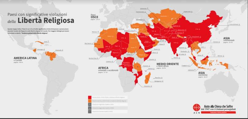 Cominciato con un piccolo libretto, il rapporto di Aiuto alla Chiesa che Soffre sulla Libertà Religiosa è ora un tomo di quasi 900 pagine, che presenta schede per ogni Stato, cercando di comprendere lì dove la libertà religiosa è davvero messa sotto attacco, e perché. Non ci sono solo i dati negativi. Si segnala anche una crescita del dialogo, un rinnovato impegno interreligioso, cambiamenti geopolitici importanti come quelli che, in Medio Oriente, hanno portato agli accordi di Abramo, ovvero la rappacificazione tra Israele e alcuni Paesi arabi, conseguenza di nuove alleanze trasversali.