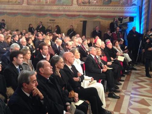 Aquí, en esta Basílica, nos inspiran los hermosos frescos del Giotto, y quisiera hacer referencia a una imagen que nos sirve de ejemplo: es la representación de las conversaciones de paz entre el Sultán musulmán y Fray Francisco.