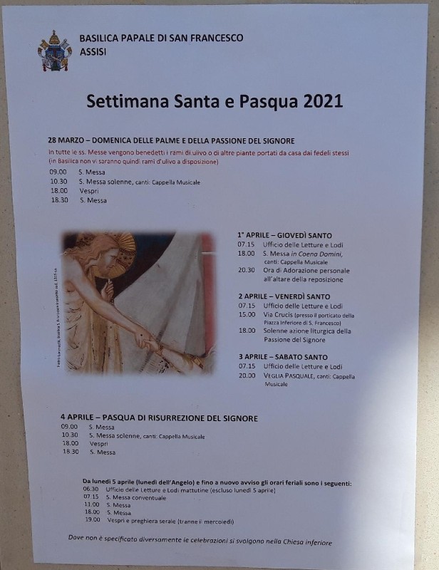 Queste le celebrazioni per la Settimana Santa e Pasqua 2021 nella Basilica di San Francesco ad Assisi.