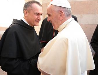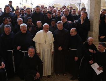 Al Sacro convento è stato accolto dal Custode, padre Mauro Gambetti. Il Papa ha salutato e abbracciato Bartolomeo I, patriarca ecumenico di Costantinopoli; Ignatius Aphrem II, patriarca siro-ortodosso di Antiochia; Justin Welby, arcivescovo di Canterbury e Primate della Chiesa di Inghilterra; Riccardo Di Segni, rabbino capo di Roma; Abbas Shuman, vice presidente dell'Università Al-Azhar; il fondatore della Comunità di Sant'Egidio Andrea Riccardi.