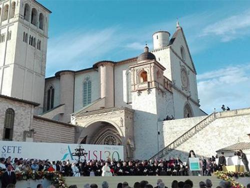 Assisi è un pezzo di pace che fa quasi da contraltare a una guerra mondiale "a pezzi". Domenica scorsa il Papa ha chiesto all'Angelus che oggi tutto il mondo sia unito in una giornata mondiale di preghiera per la pace, sottolineando l'urgenza dell'invocazione a Dio e di ogni iniziativa possibile per il dialogo. Ritorna in mente il discorso di Benedetto XVI del 2011 proprio ad Assisi, quando ricordò che con la preghiera si può scuotere il cuore di Dio e, nello stesso tempo, risvegliare le nostre coscienze e il cuore dell'uomo.