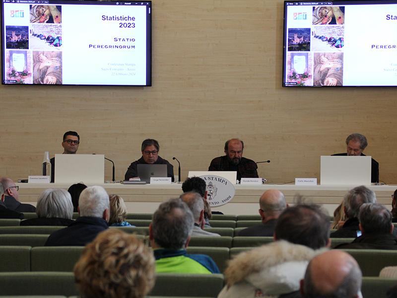 Sono state presentate questa mattina le statistiche per il 2023 della Statio Peregrinorum, il servizio della Basilica di San Francesco che accoglie i pellegrini, rilascia l’attestato dell’avvenuto pellegrinaggio (Testimonium) e classifica i dati per elaborare le statistiche del turismo lento e sostenibile verso la tomba del Santo. Dopo i saluti del Custode del Sacro Convento fra Marco Moroni, OFMConv, e della sindaca di Assisi Stefania Proietti, sono intervenuti il poeta Davide Rondoni, presidente del Comitato nazionale per le celebrazioni dell’ottavo centenario della morte di san Francesco, il direttore della Via Lauretana Simone Longhi, e Carlo Menichini, presidente Hospitale Laudato Si’. fra Jorge Fernández, OFMConv, ha presentato nel dettaglio le statistiche a nome della Statio Peregrinorum.
