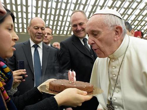 Durante l’udienza generale, i fedeli presenti in Aula Paolo VI hanno fatto gli auguri a Papa Francesco che sabato prossimo 17 dicembre compirà 80 anni. Tanti gli applausi affettuosi, le strette di mano e gli abbracci. Una signora gli ha presentato una torta con due candeline a forma di "8" e di "0" già accese e il Papa le ha spente soffiando. Poi, scherzando sugli auguri ricevuti in anticipo, ha detto: