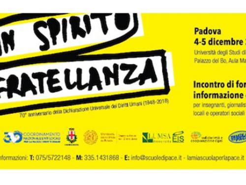 L’incontro, intitolato “In spirito di fratellanza” e dedicato al prof. Antonio Papisca recentemente scomparso, proseguirà anche martedì 5 dicembre. Saranno due giornate particolarmente ricche di idee, riflessioni, testimonianze e proposte dedicate alla formazione e alla progettazione di nuovi percorsi educativi centrati sui diritti ma anche sulle responsabilità personali e collettive che spesso vengono trascurate.
